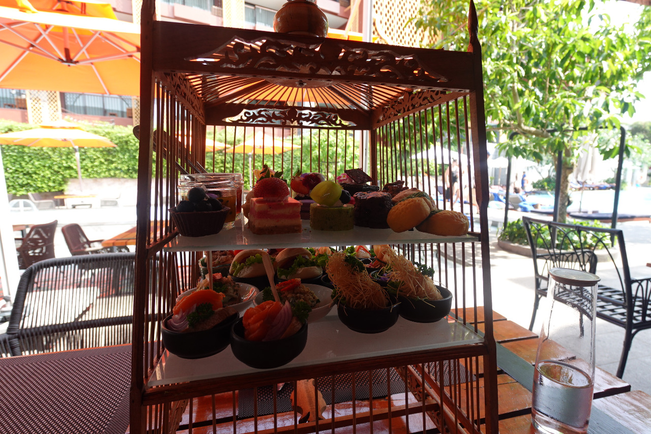 Verso le 14,00 a bordo piscina è l’ora del Grand High Tea per noi due: una farandola di mignardise salate e dolci. Eccellenti, ma decisamente troppo per due persone!