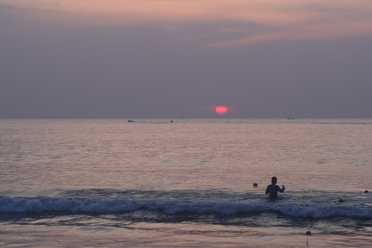 Verso le 18,00 andiamo a fare una passeggiata in spiaggia aspettando il tramonto che è “solo” carino perché delle nuvole hanno deciso di invitarsi proprio sul più bello!